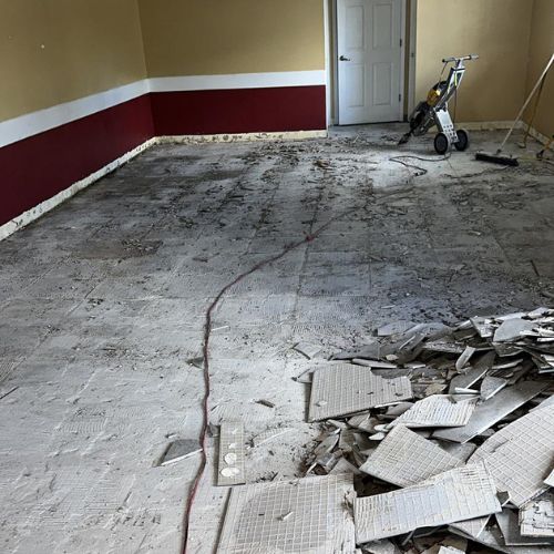 Full demo & haul-away of ceramic, VCT, glue-down carpet, etc.